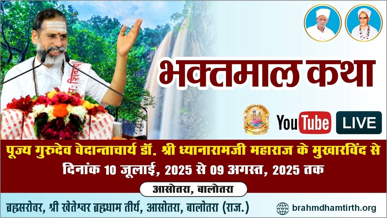 कुलगुरुदेव श्री खेताराम जी महाराज के आशीर्वाद से सद्गुरुदेव श्री श्री तुलछाराम जी महाराज का 45 वां तपः साधना चातुर्मास ब्रह्मसरोवर, श्री खेतेश्वर ब्रह्मधाम तीर्थ, आसोतरा (बालोतरा) में चल रहा है। कुलगुरुदेव श्री खेताराम जी महाराज की कृपा से, सद्गुरुदेव श्री श्री तुलछाराम जी महाराज के आशीर्वाद से वेदांताचार्य डॉ. श्री ध्यानाराम जी महाराज का चातुर्मास श्री खेतेश्वर ब्रह्मधाम तीर्थ, ब्रह्म सरोवर , आसोतरा (बालोतरा) में चल रहा है। इस चातुर्मास में वेदांताचार्य डॉ. श्री ध्यानाराम जी महाराज के मुखारविंद से श्री शिव महापुराण एवं श्री भक्तमाल कथा का पाठ प्रतिदिन हो रहा है। जिसका सीधा प्रसारण ब्रह्मधाम तीर्थ आसोतरा यूट्यूब चैनल पर हो रहा है।